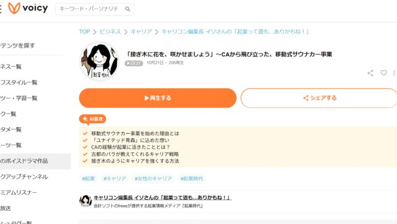 お知らせ 【インタビュー】【Voicy】キャリコン編集長 イソさんの「起業って道も…ありかもね!」に紹介していただきました(2025年10月)